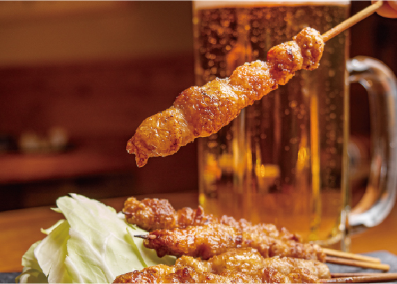 博多名物 焼き鳥“とり皮”は福岡のローカルグルメとして人気のメニュー。らせん状に串にグルグルと巻きつけたとり皮をこだわりの醤油ダレにつけてじっくり焼き上げることで生まれる、「外はカリッと中はジューシー」な独特の食感が人気です。また、福岡のローカルグルメとして地元客はもとより、観光客にも大変人気で、近年、九州の土産市場において持ち帰りが可能な「冷凍焼き鳥」は需要が高まり、商品認知も拡大しています。そこで、行列のできる人気店「博多もつ鍋やまや」の名物メニューである「とり皮」を、自宅でも温めるだけで手軽に食べていただきたいという想いから「博多もつ鍋やまやの名物 とり皮」を開発しました。