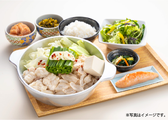 本店舗では、博多名物の「もつ鍋」と、やまや自慢の辛子明太子を定食スタイルで気軽にお楽しみいただける“新しいスタイルの食堂”として展開いたします。ランチからディナーまで、辛子明太子を主役にした定食や、国産牛もつを使用した本格もつ鍋を提供いたします。
