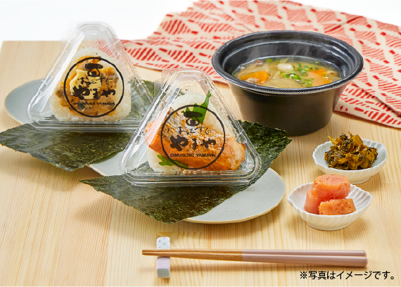 また、店内の冷蔵ショーケースには、やまや自慢の168時間熟成辛子明太子やからし高菜をご用意。おむすびをご購入されたお客さまは、専用のカップに詰めることができるため、やまやの味わいを存分にお楽しみいただけます。