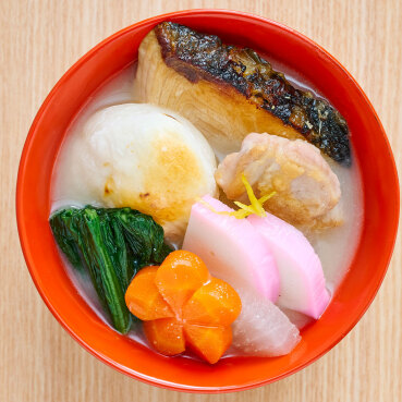 〈総本店うまだしを使用したレシピ〉 博多はぶりとかつお菜を使ったお雑煮が定番ですが 中身は博多、仕立ては京都風にして白味噌の優しい甘みと、 焼いたぶりの香ばしさが溶け合う、心温まる一椀に仕上げました。