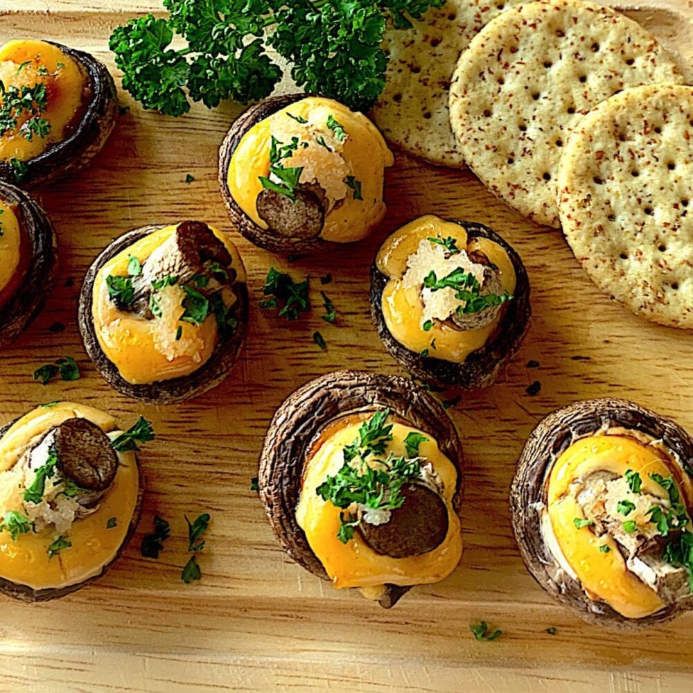 具材をのせて焼くだけ!椎茸のめんたいチーズ焼き
