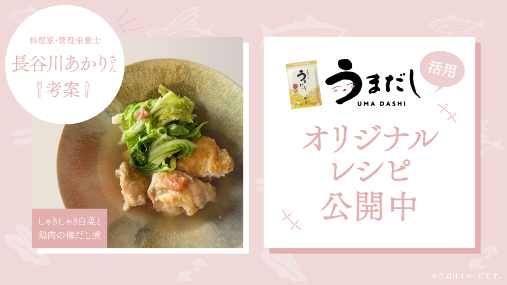 料理家・管理栄養士の長谷川あかりさん考案「うまだし」活用オリジナルレシピ公開のお知らせ