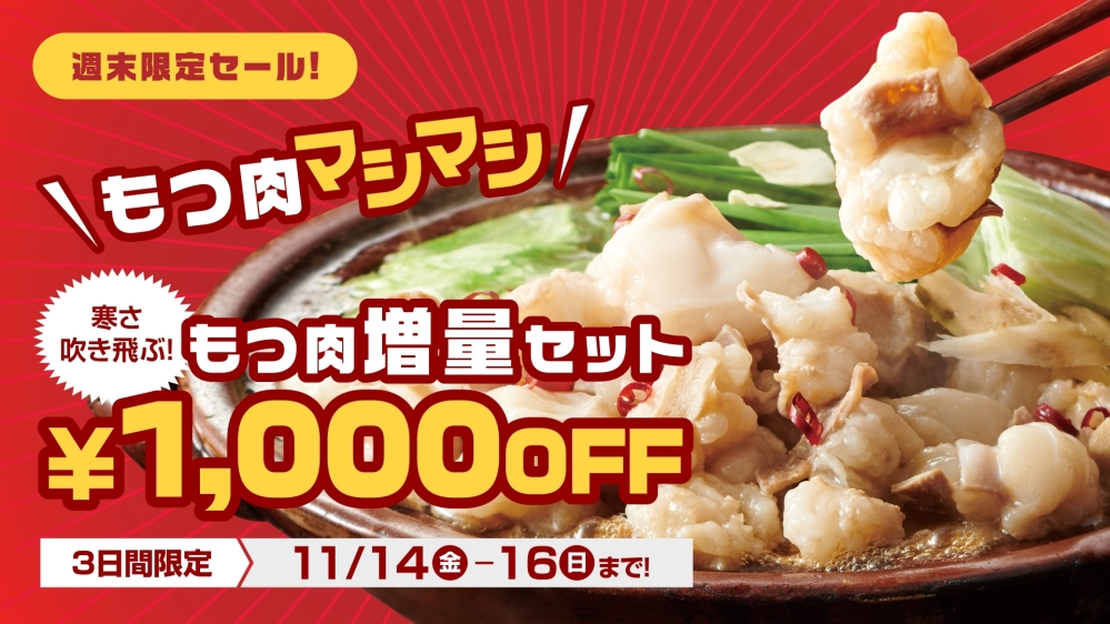 ★週末限定もつ鍋SALE★もつ肉増量セットが1000円OFF!