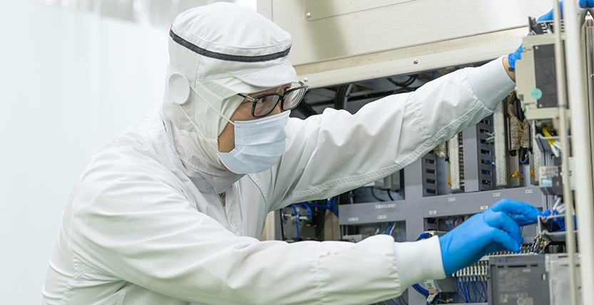 工場全体、そして本社屋の一部に関わる機械・設備の管理を担当しています。