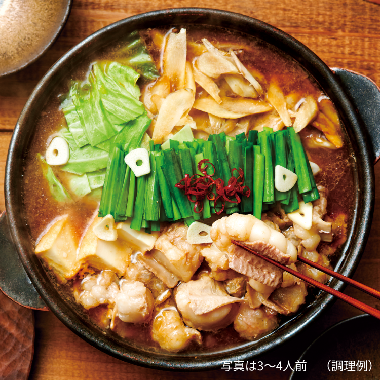 - 【鍋用スープ(濃縮タイプ)】米みそ、みりん、たん白加水分解物、砂糖、にんにく、食塩、ポークエキス、だし(かつお節、昆布)、チキンエキスパウダー、醸造酢、ごま油/調味料(アミノ酸等)、着色料(カラメル)、香辛料抽出物、増粘剤(キサンタン)、(一部に小麦・ごま・大豆・鶏肉・豚肉を含む) 【ちゃんぽん麺(ゆで)】小麦粉、澱粉、乾燥卵白、植物性蛋白、食塩/かんすい、焼成Ca、着色料(クチナシ)、(一部に卵・小麦を含む) 【にんにく(別添具材)】にんにく 【唐辛子(別添具材)】唐辛子 【牛もつ】牛小腸(国産)